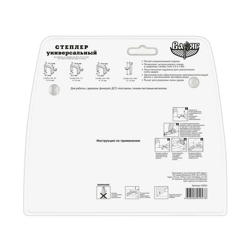 Степлер Варяг 85005 усиленный, регулировка ширины скобы (12/24)