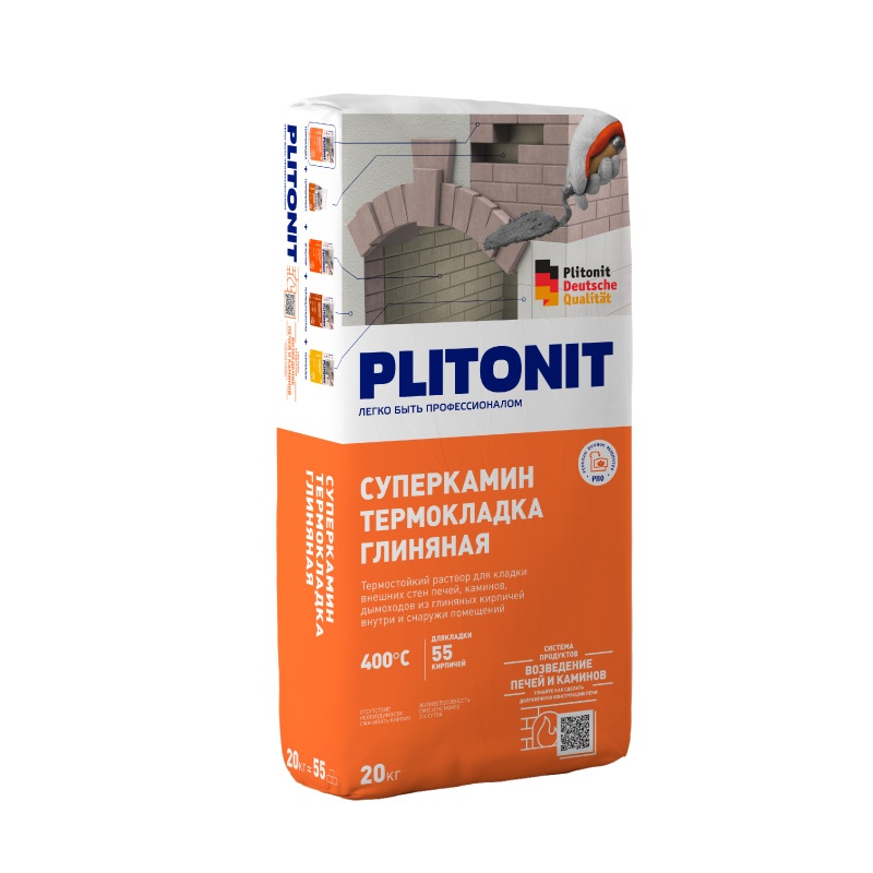 ТермоКладка Plitonit СуперКамин глиняная для наруж/внутр работ (20 кг)