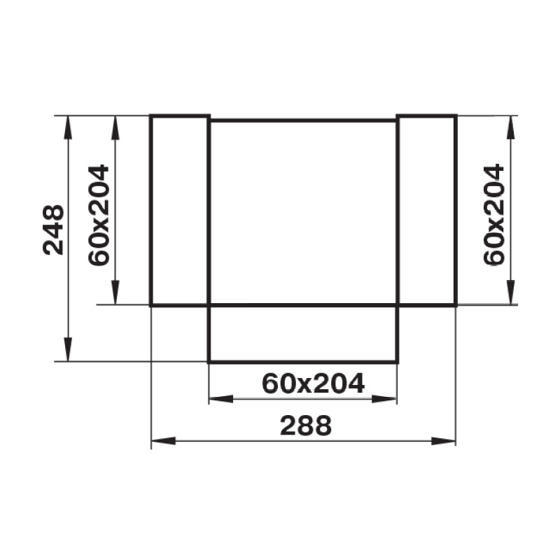 Предназначен для разделения потоков воздуха в системах вентиляции. Имеет три выхода для подсоединения плоских вентиляционных каналов с размерами 204х60 мм.