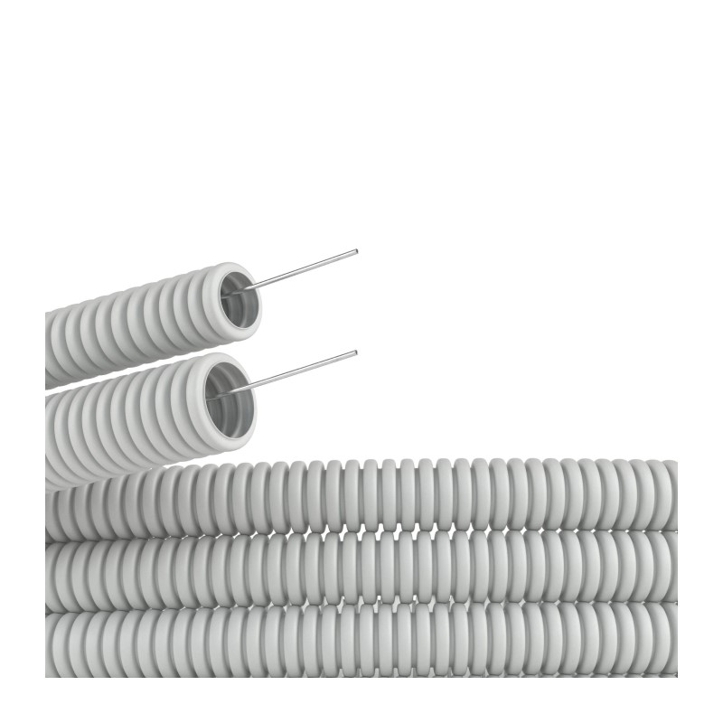 Труба гофрированная DKC ПВХ легкая с зондом, d=20 мм, серая (100п.м.)