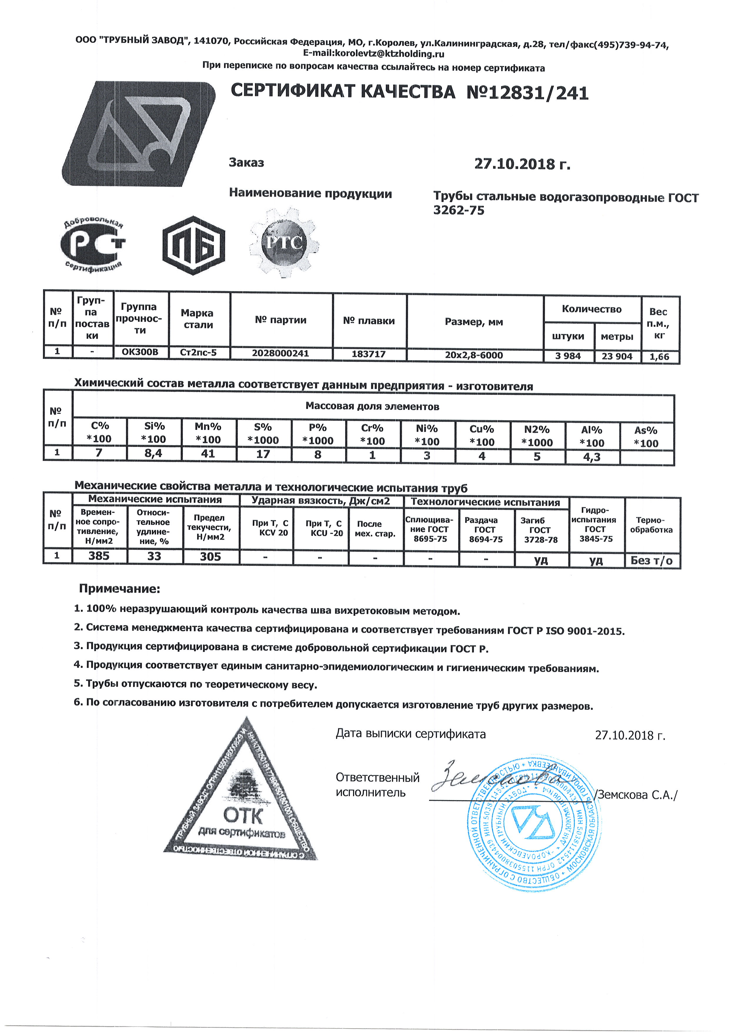 Труба стальная водогазопроводная ВГП Дy, 20х2,8 мм, 3 м