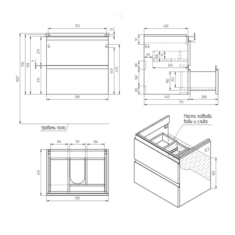 Раковина приобретается отдельно, в комплект поставки тумбы - не входит.