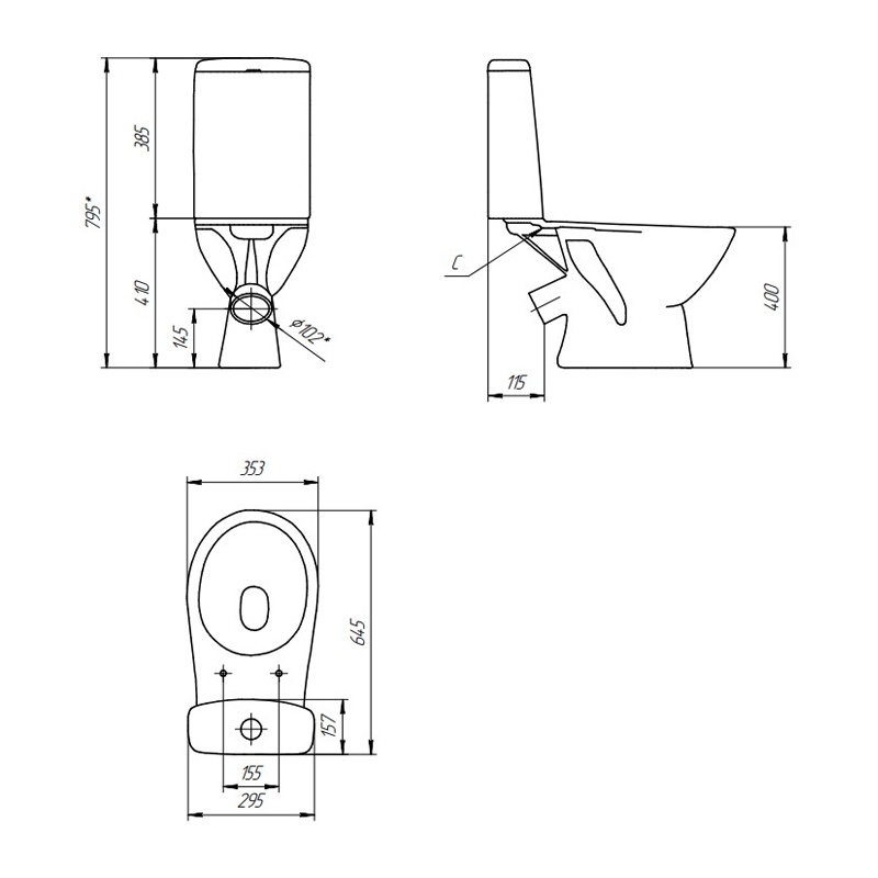 Унитаз-компакт Cersanit Флавис Slim, косой выпуск, 645х353х795 мм