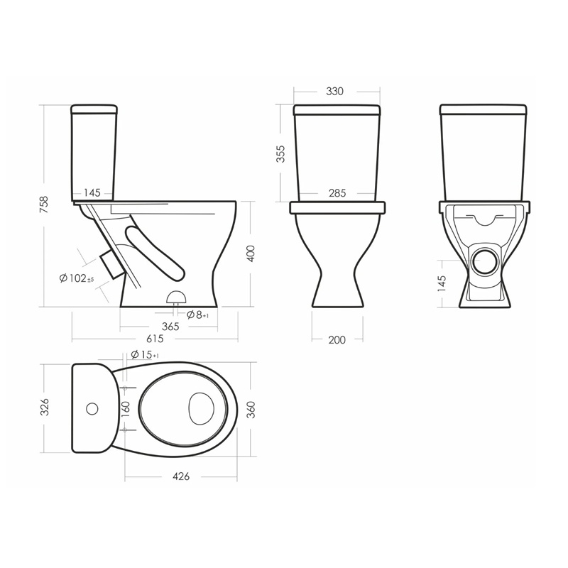 Унитаз-компакт Sanita Формат стандарт, косой выпуск, 615x360x760 мм