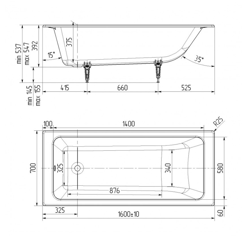 Ванна чугунная Универсал Оптима, без ножек, 1600х700 мм