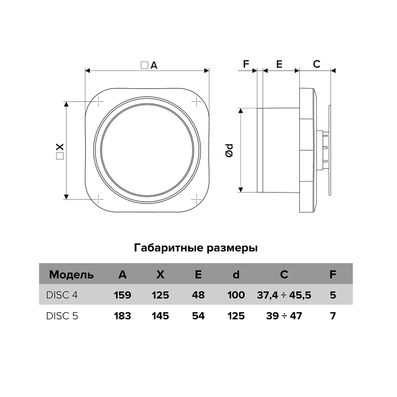 Вентилятор вытяжной Era 100 Disc 4C, 105 м3/ч, с обратным клапаном