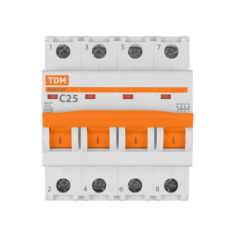 Выключатель автоматический TDM ВА 47-29, 4,5кА, С 25А, 4П