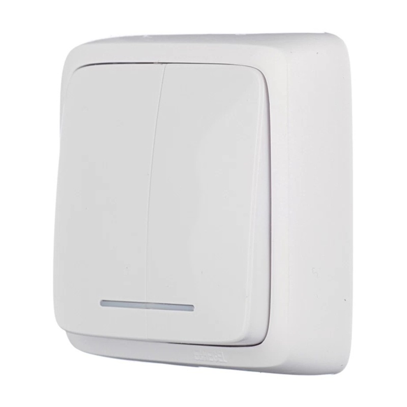 Выключатель о/у Alfa ВА10-154, 2 клавиши, с/инд, белый
