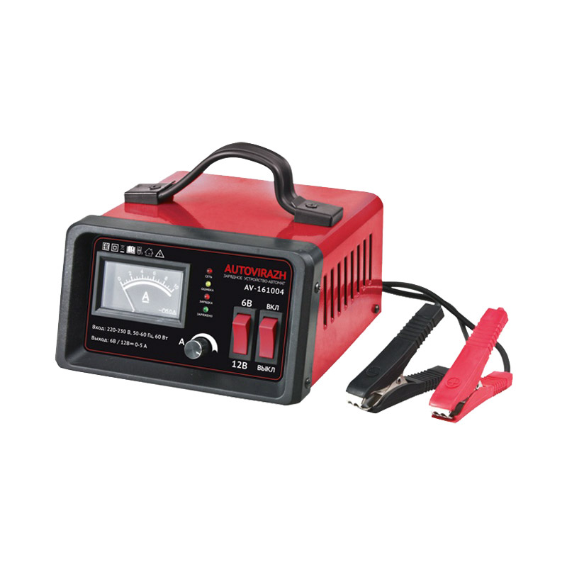 Используется для зарядки аккумуляторных батарей напряжением 6В/12В и емкостью до 100 Ач. Позволит вам быстро и без посторонней помощи подзарядить аккумулятор.